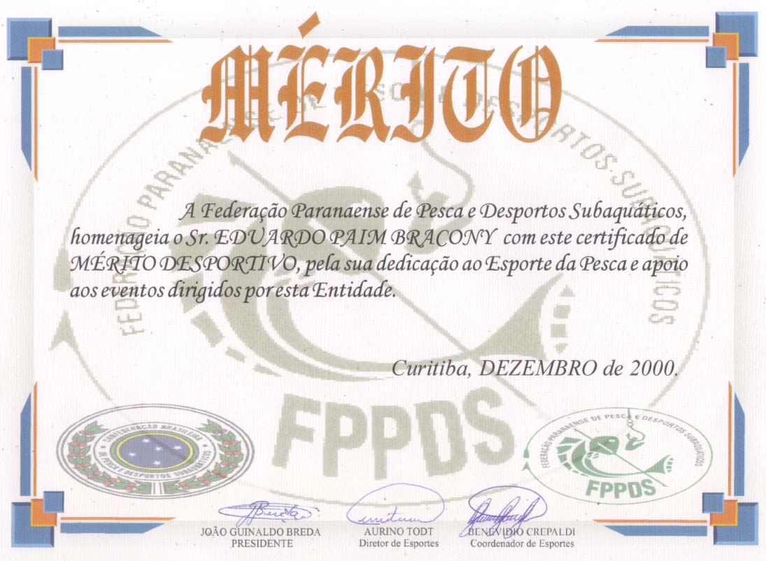 Você não sabia , mas o desportista EDUARDO PAIM BRACONY , antes da existência da CBPDS foi um dos fundadores da FPPDS e seu primeiro Presidente do TRIBUNAL DE JUSTIÇA DESPORTIVA , sendo homenageado também pelos desportistas paranaenses com o titulo de "PATRONO DA FPPDS" , registro que consta no estatuto de fundação da Entidade.