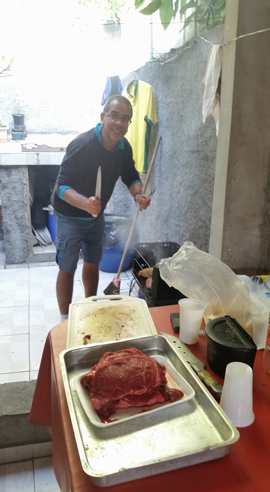 enquanto no segundo andar is sendo preparado por Adilson Silva ( escalado como churrasqueiro do dia) um farto e saboroso churrasco bem variado com picanha, maminha, contra filé, linguiças variadas, sobre coxa, asa, lombinho, pão com alho, etc.