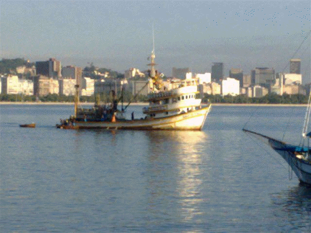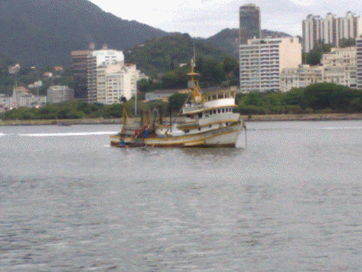 APÓS ISSO, a lancha da Marinha seguiu em velocidade na direção da Ponte Rio X Niterói , a Traineira rumou na mesma direção e... Dois atuneiros logo que a Marinha afastou-se, vieram para o local e seus barcos de apoio começaram a cercar novamente as sardinhas à vista de todos, mas anoitecendo a máquina que usamos não tinha recursos para registrar a ocorrência. |